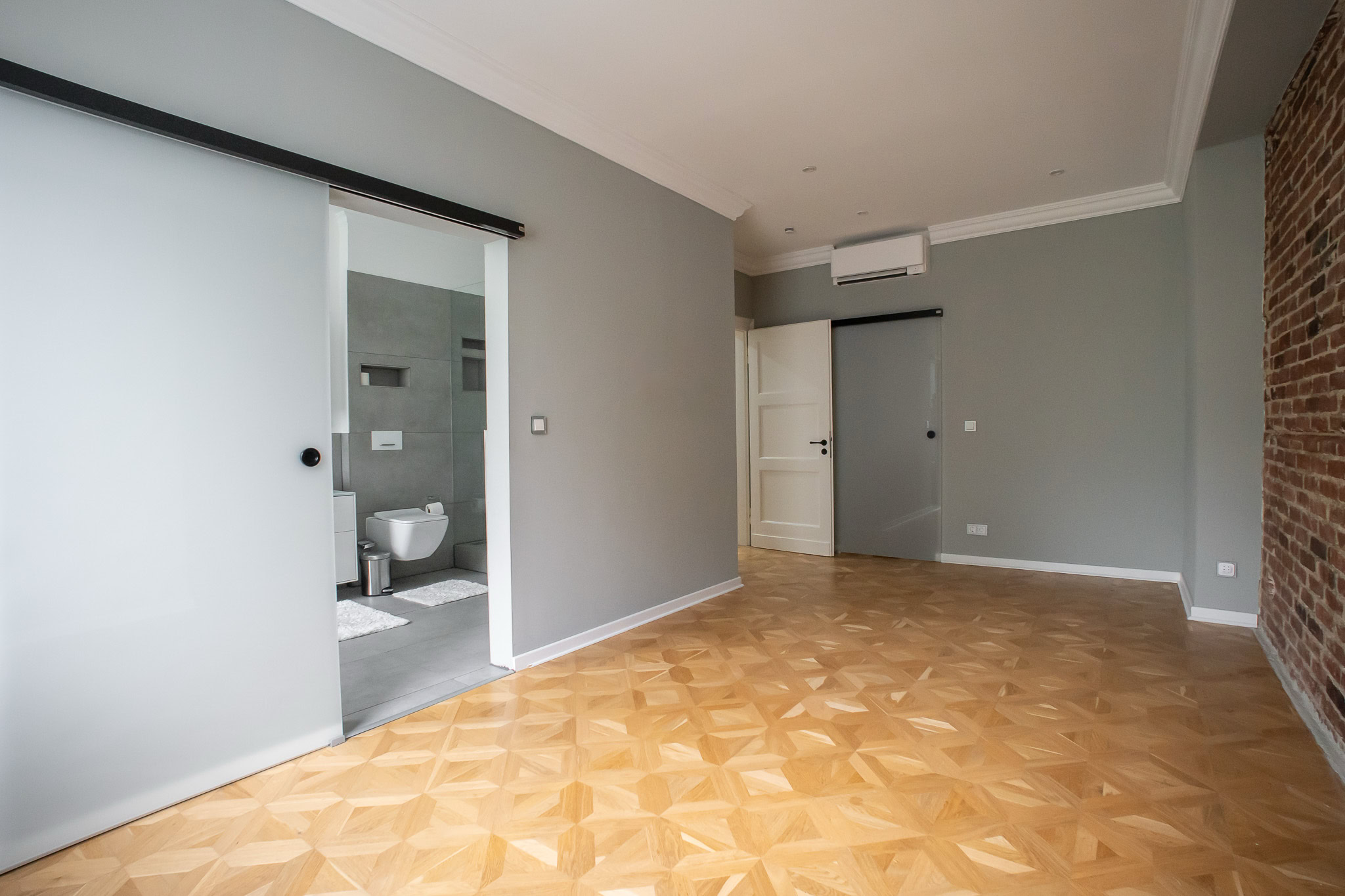 Das ebenfalls großzügig geschnittene Kinderzimmer mit Balkon bietet die Möglichkeit, frische Luft hereinzulassen und das Treiben auf der Straße zu beobachten. Das Wohnzimmer, Schlafzimmer sowie das Kinderzimmer sind mit einer Klimaanlage ausgestattet, die für ein angenehmes Raumklima in allen Räumen sorgt. Das ausbaufähige Dachgeschoss ist bereits für ein weiteres Klimagerät vorbereitet.