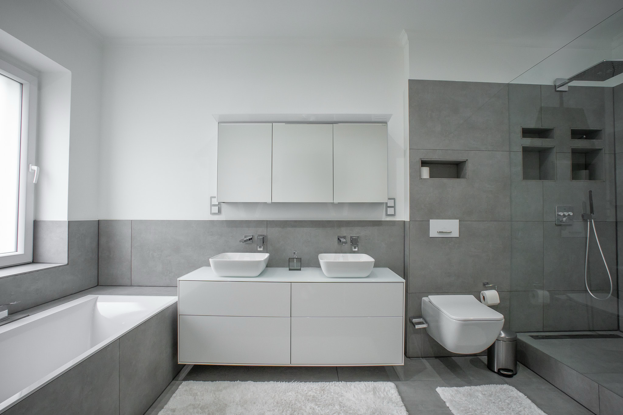 Die Böden der Wohnung sind mit Echtholzparkett und stilvollen Fliesen ausgelegt, die eine hochwertige und wohlige Wohnatmosphäre schaffen. Große Fensterfronten, zum Teil mit maßgefertigten und stilvollen Vorhängen, sorgen für Helligkeit. Alle Decken in der Wohnung wurden gedämmt und mit Einbaustrahlern ausgestattet, die für optimale Lichtverhältnisse sorgen.